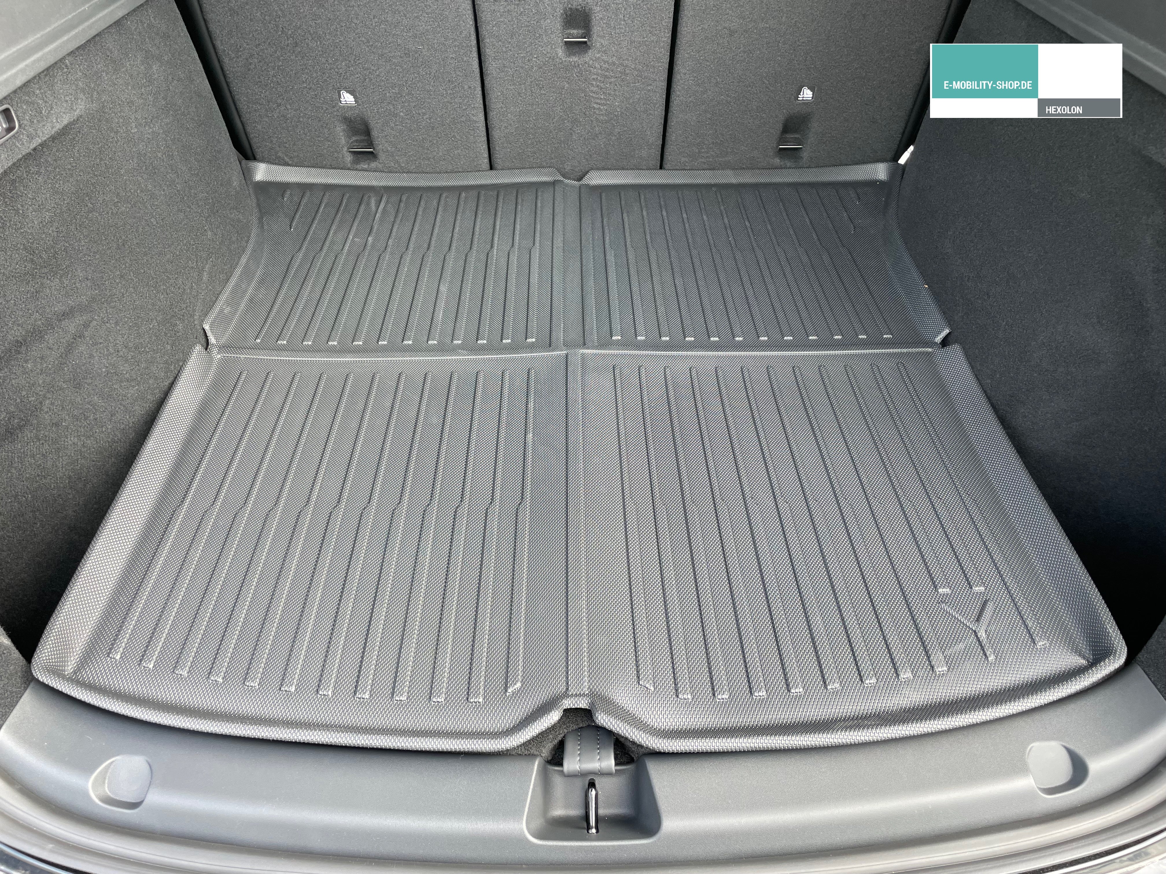 - mit vorgeprägtem Knick um an das untere Kofferraum-Fach (das Kabelfach) zu gelangen.