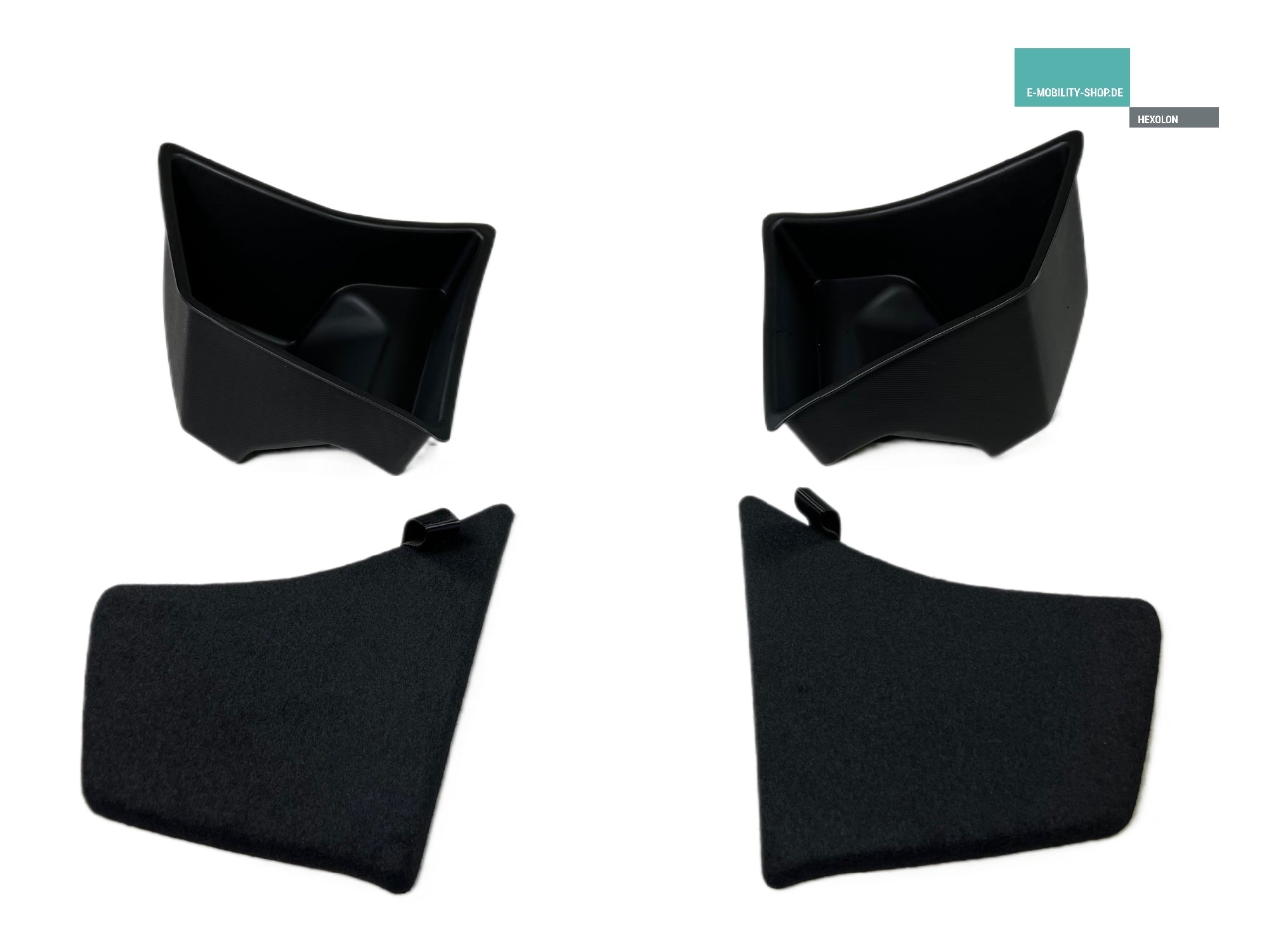 Das Set besteht aus zwei Einsätzen und zwei Deckelelementen, die sich perfekt in den Kofferraum einfügen und eine durchgehende Ladefläche herstellen.