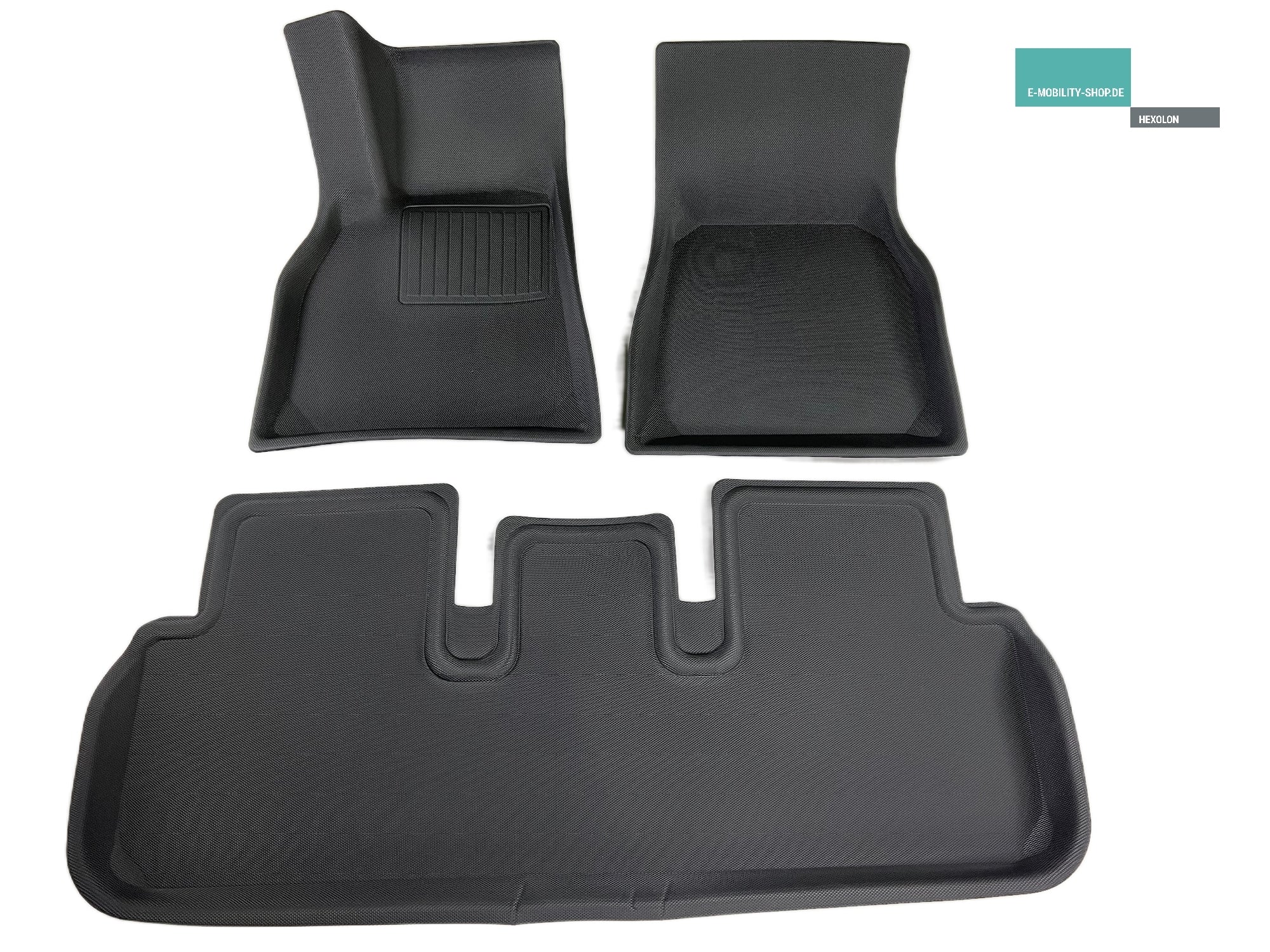 Das 3-teilige Set besteht aus Matten für die Fahrerseite, Beifahrerseite und eine durchgehende Matte für die hintere Sitzreihe.
