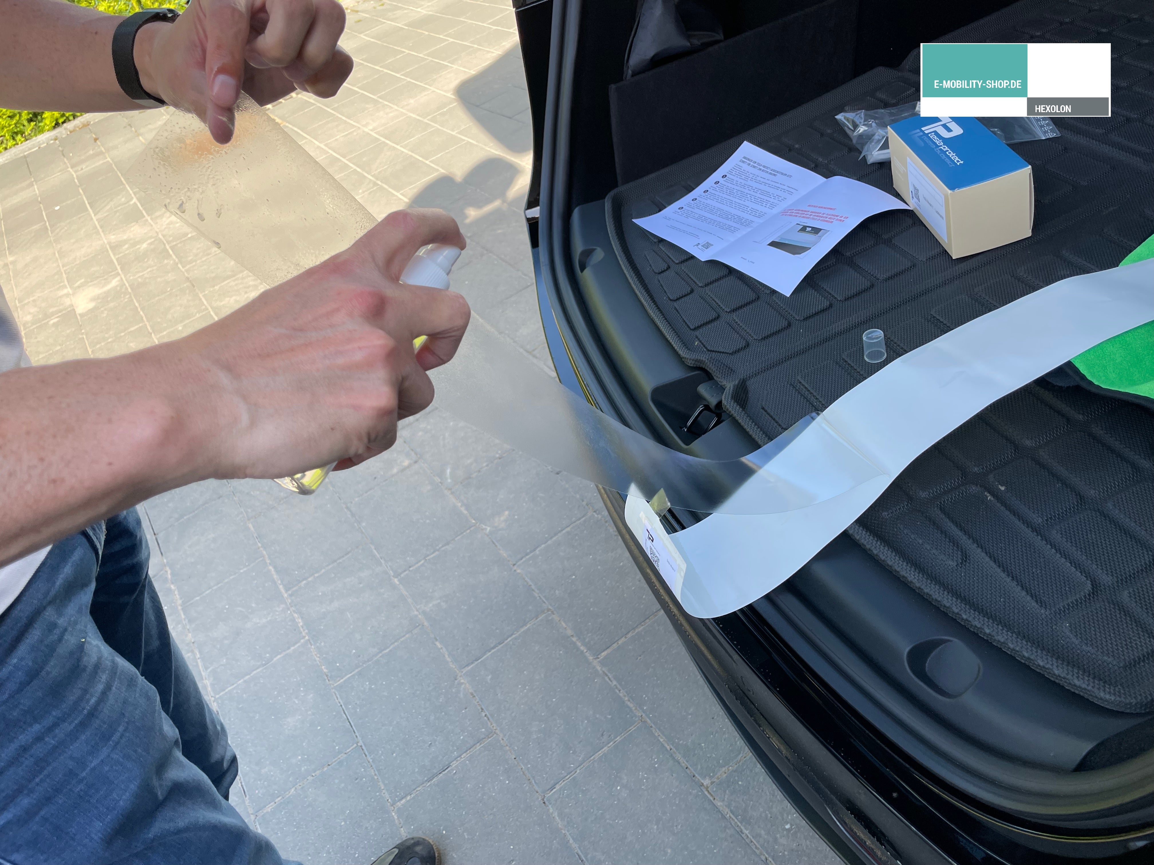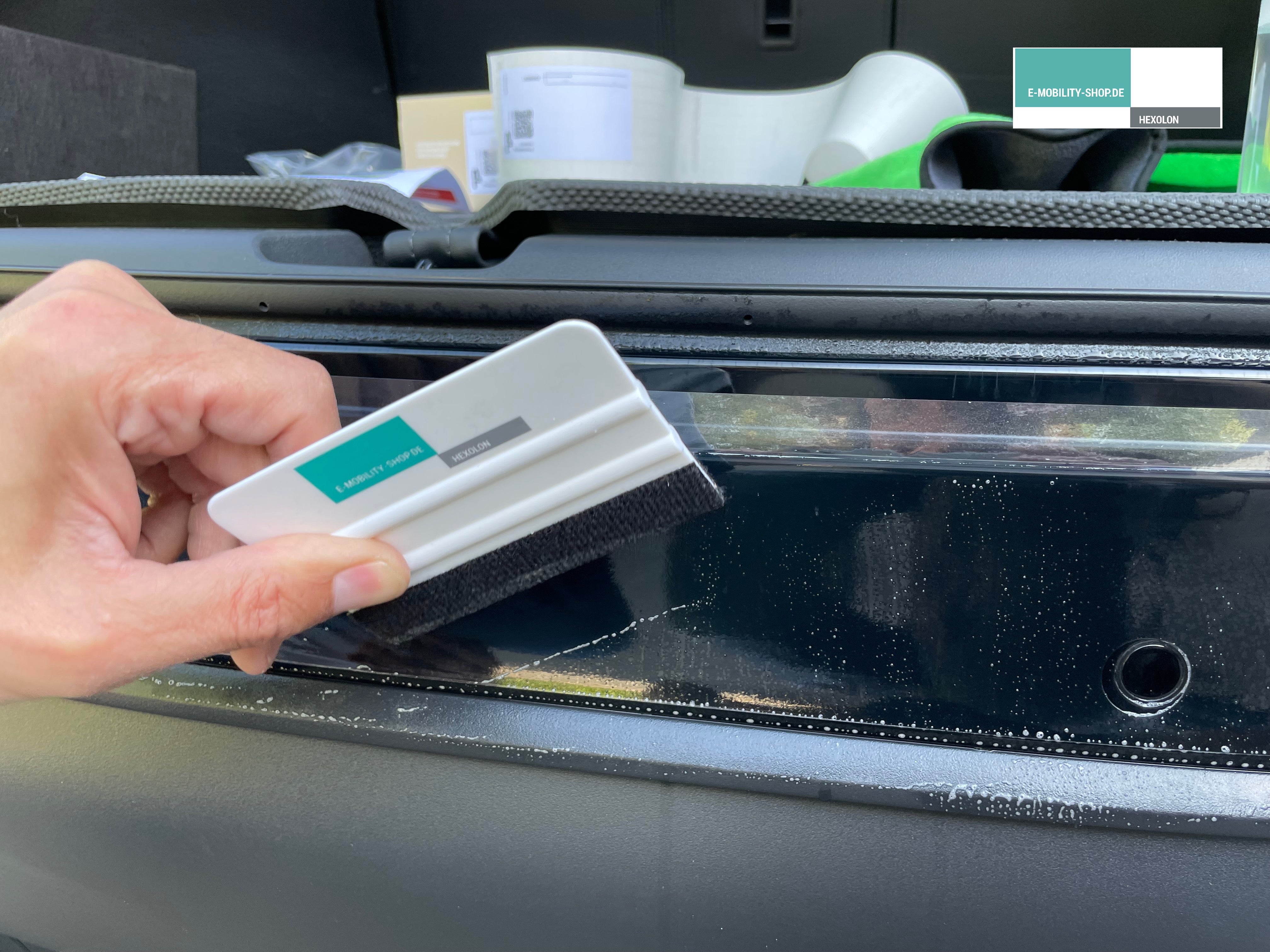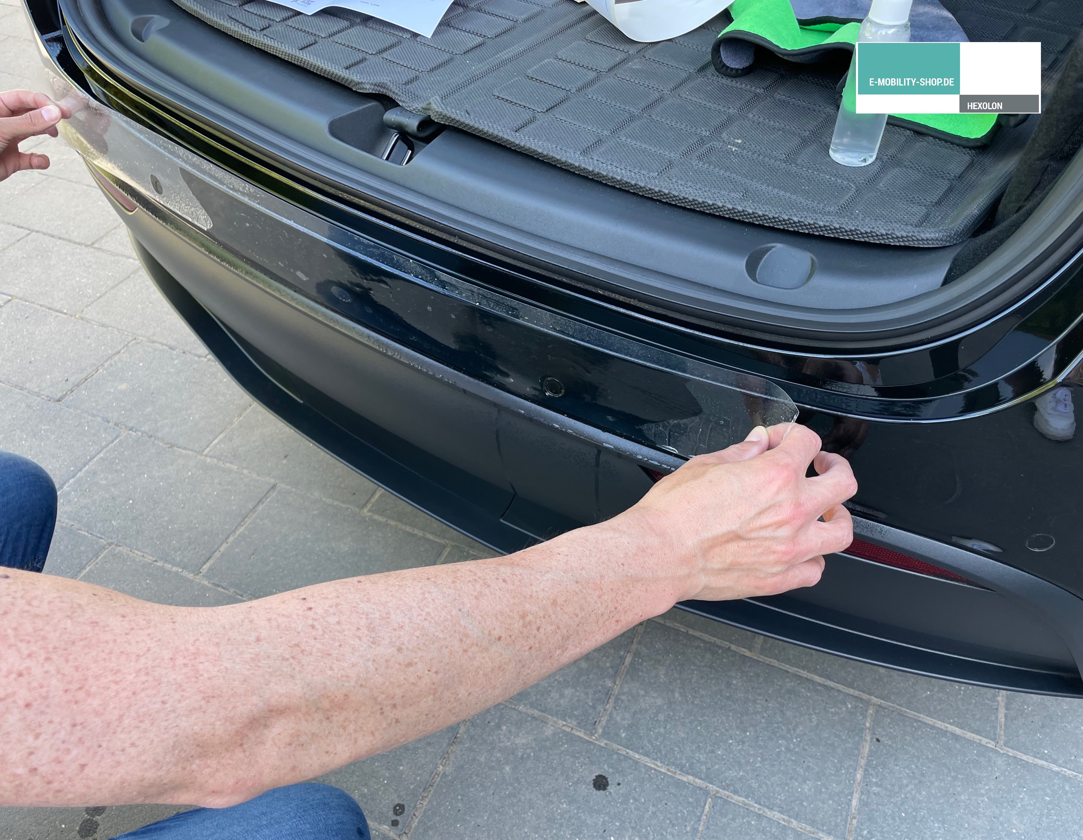 Ladekantenschutzfolie für das Tesla Model Y - sehr leicht anzubringen.